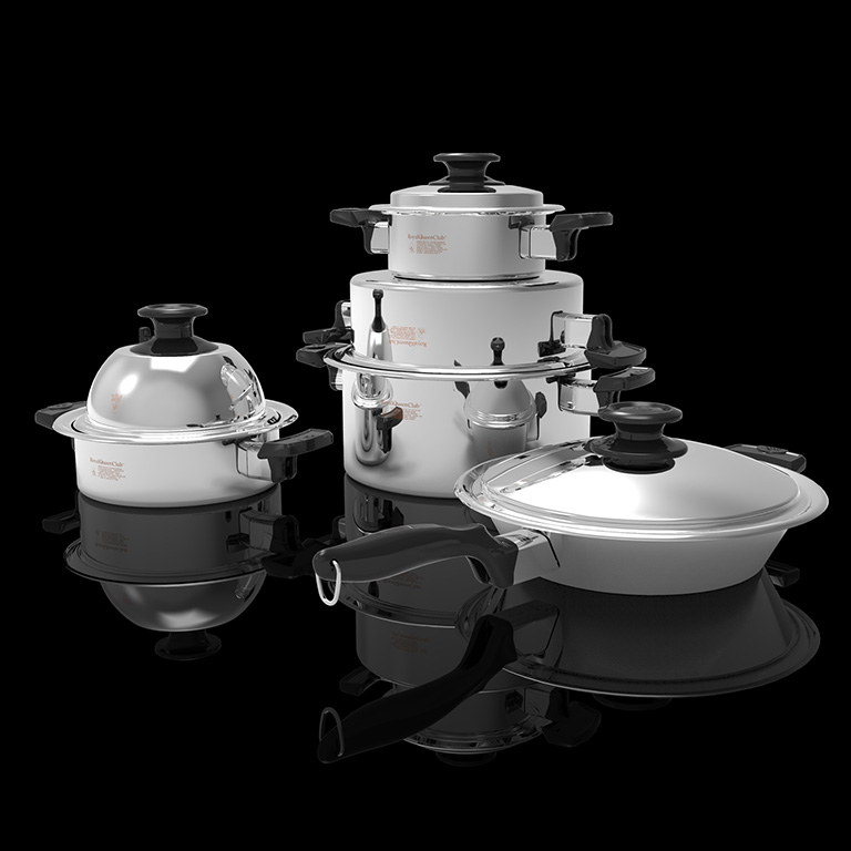 RQC 쿡웨어는 다기능 고성능 하이엔드 실내환경 관리시스템을 생산하는 코네트인더스트리 생산라인에서 완성됩니다. 로얄퀸클럽의 오랜 경험을 토대로 한 혁신적 디자인 컨셉과 디테일은 코네트인더스트리의 초정밀 전자제품 개발/생산 기술력과 장인정신으로 구현되어 세상에 없던 완전히 새로운 프리미어 쿡웨어 RQC로 탄생하였습니다.