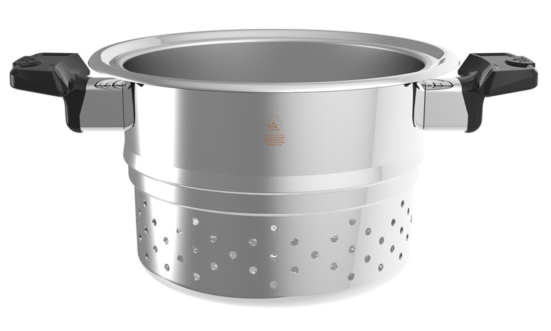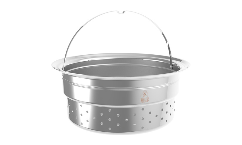 테두리 림 부분에 스팀홀이 있는 독특한 디자인의 인셋팬은 밥짓기, 스티밍이 가미된 중탕 요리 등을 가능케 하는 특별한 도구입니다. 18CM 팟과 함께 사용하세요.