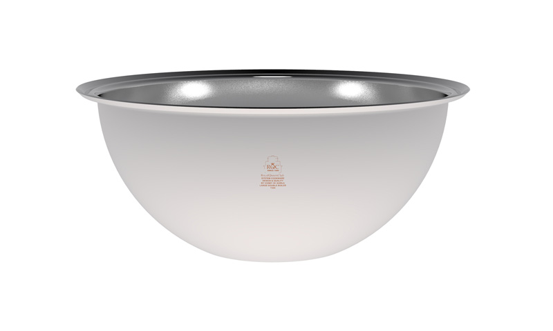 클로슈(Cloche, 반구형의 돔 뚜껑) : 라지 더블 보일러를 뒤집으면 고급 레스토랑에서 요리를 서빙할 때 사용하는 멋진 클로슈가 됩니다. 요리가 담긴 플레이트 커버로도 손색이 없고, 라지 더블 보일러는 22CM 팟, 22CM 프렌치 스킬렛, 24CM 라지 스킬렛에 훌륭한 하이 돔 커버High Dome Cover로 활용할 수 있습니다.