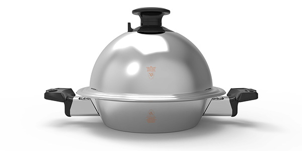 클로슈(Cloche, 반구형의 돔 뚜껑) : 스몰 더블 보일러를 뒤집으면 고급 레스토랑에서 요리를 서빙할 때 사용하는 멋진 클로슈가 됩니다. 요리가 담긴 플레이트 커버로도 손색이 없고, 18CM 팟, 20CM 스몰 스킬렛, 20CM 팟에 훌륭한 하이 돔 커버High Dome Cover로 활용할 수 있습니다.