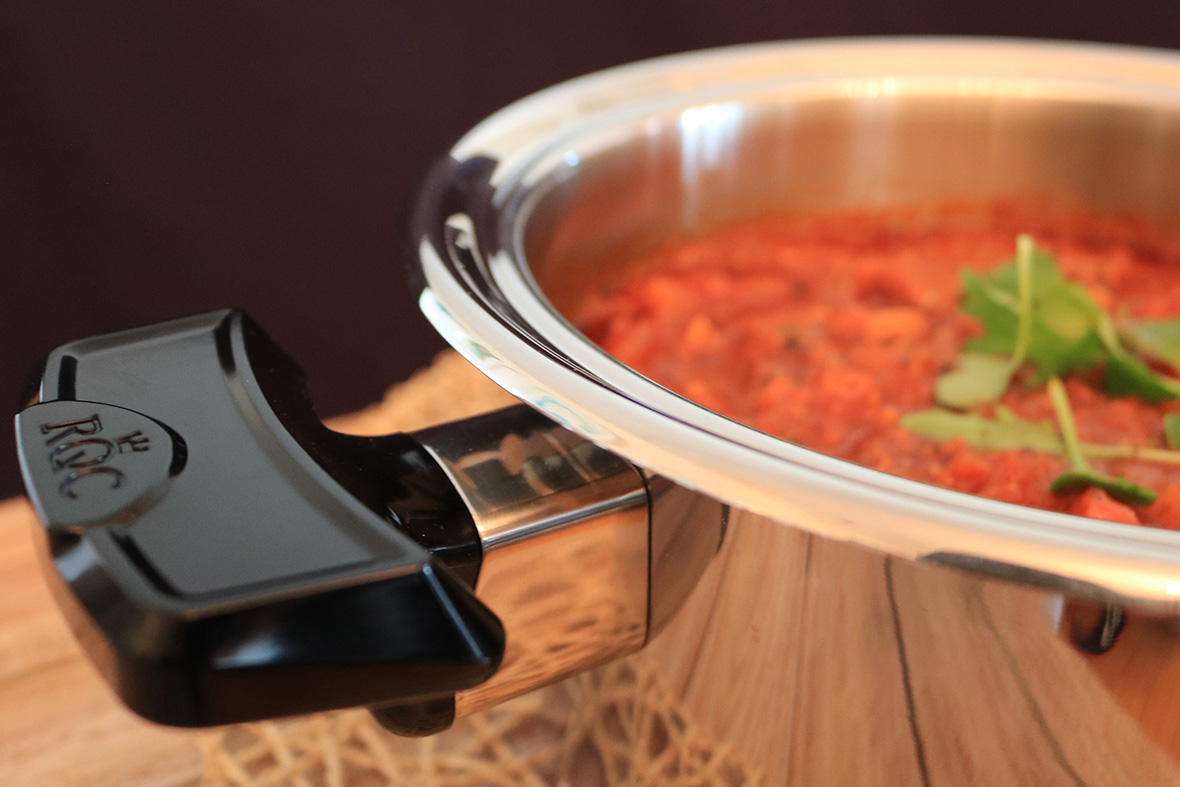 RQC 쿡웨어는 인체공학적으로 디자인된 열에 강한 합성수지 손잡이가 있어 요리 중이나 요리 후 이동할 때 편안하고 안전하게 옮길 수 있습니다.