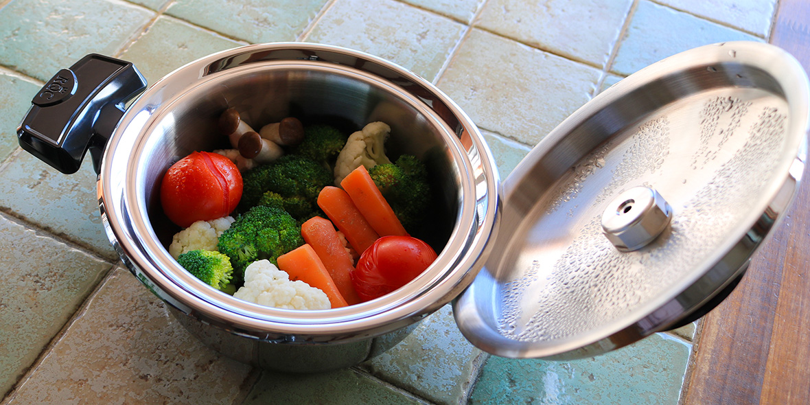 휘슬링 노브와 수막효과water seal가 수분이 빠져나가는 것을 막아주므로 재료 본연의 맛과 향기, 색깔을 지켜주고, 비타민, 미네랄 등 영양소의 유실과 파괴를 막아, 더욱 건강하고, 아름답고 향기로우며 풍성한 맛의 요리를 선사합니다.